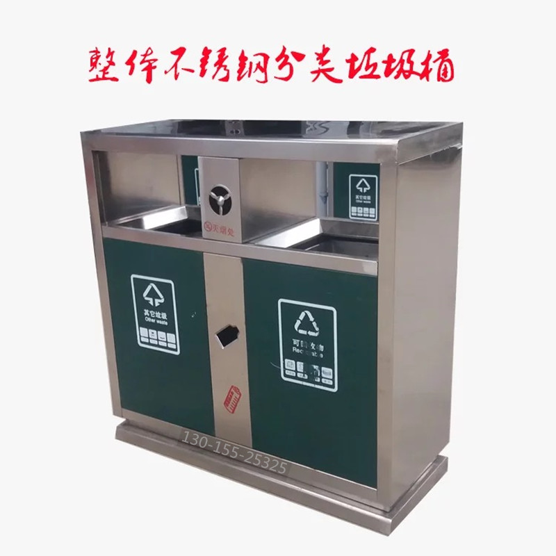 不銹鋼分類垃圾桶采用優質加厚不銹鋼制造,具有一定的防腐蝕功能,不易生銹,使用壽命更長,做工精致,外觀大方,適合各種戶外場所。